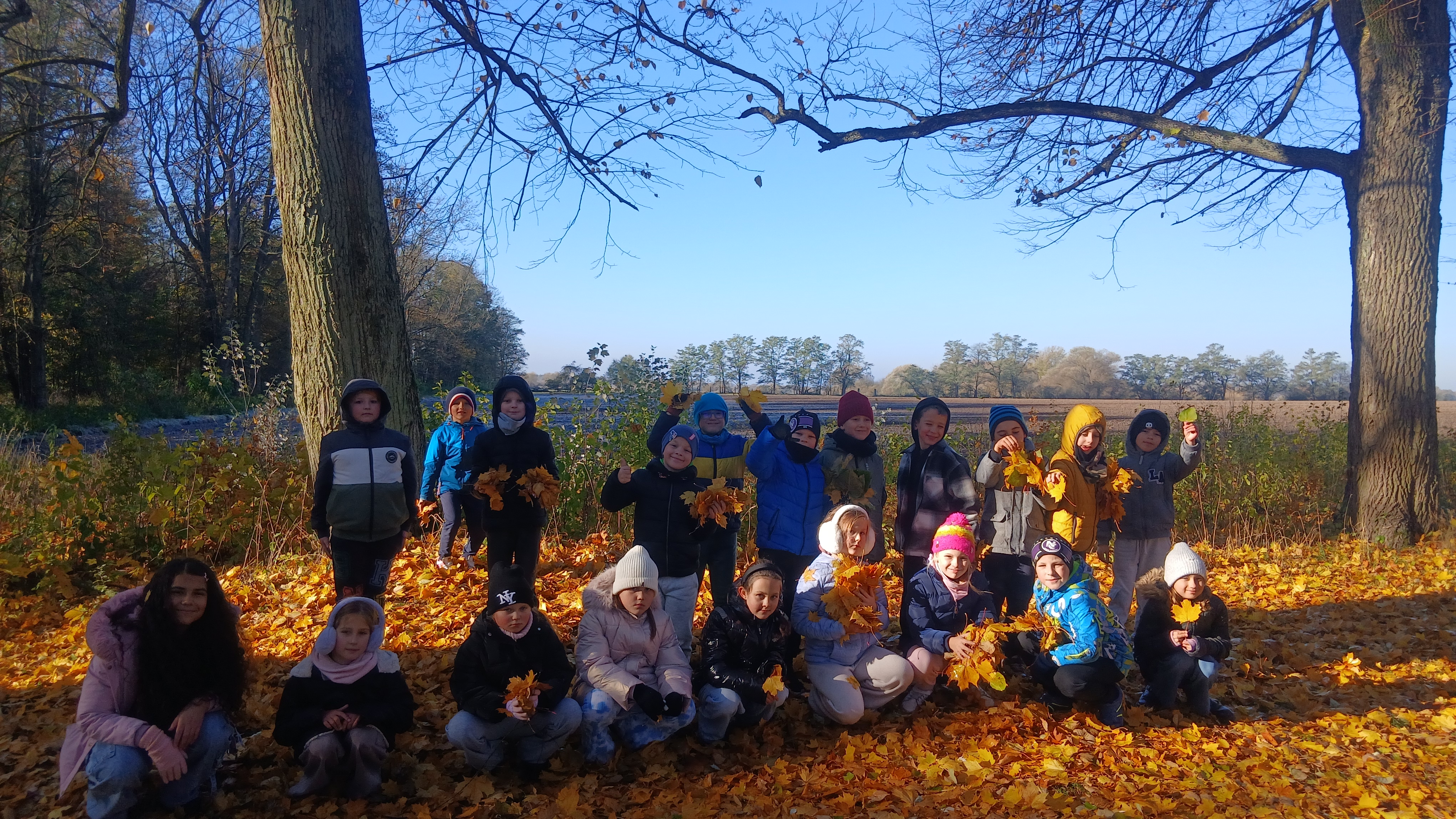 W pobliskim lesie dowiedziały się też, czemu nie wolno niszczyć grzybów – nawet tych niejadalnych, przecież każdy z nich ma swoje zadanie. Grzyby dbają o czystość lasu i pomagają drzewom rosnąć, tworząc z nimi niewidzialną sieć współpracy. Spacer po lesie był jak wędrówka po żywej książce przyrody. Uczniowie rozpoznawali liście dębu, lipy, jarzębiny, buku i klonu, porównywali ich kształty i kolory, a najpiękniejsze zebrali do szkoły, by później stworzyć z nich barwne prace plastyczne.